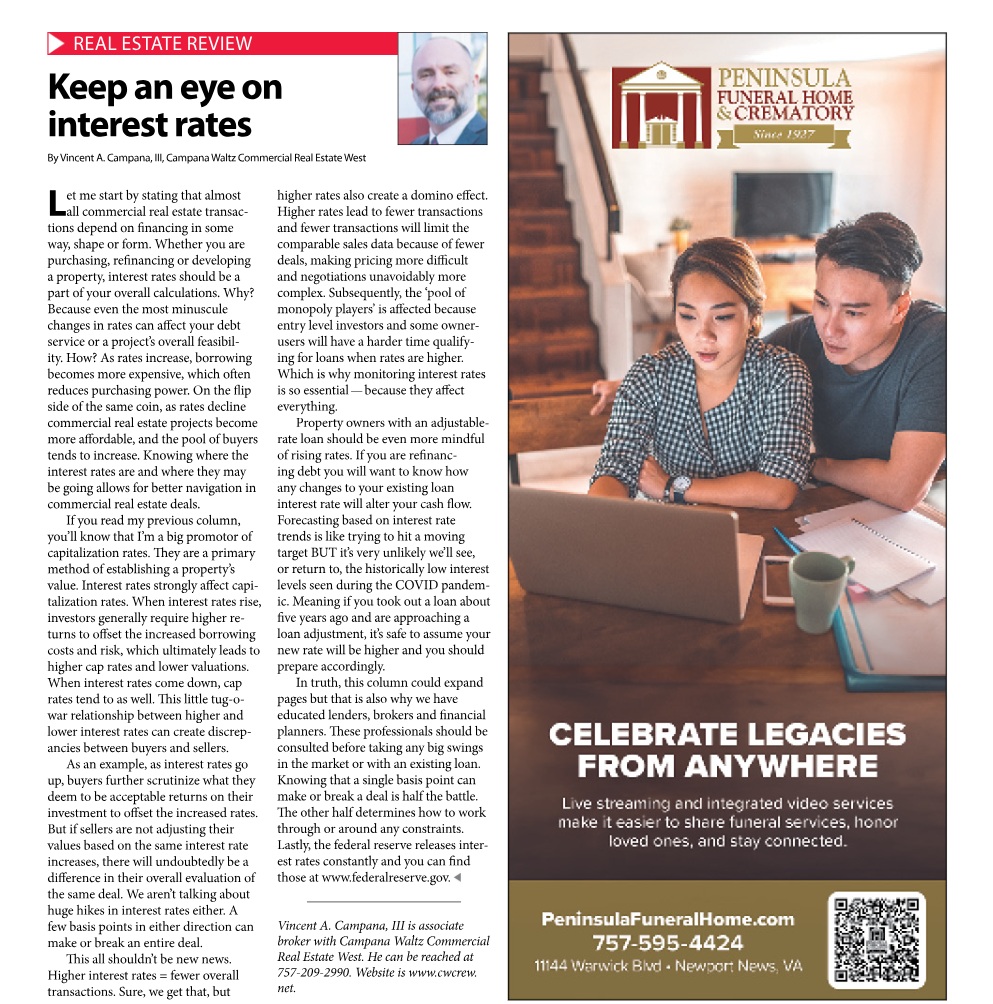 Let me start by stating that almost all commercial real estate transactions depend on financing in some way, shape, or form. Whether you are purchasing, refinancing, or developing a property, interest rates should be a part of your overall calculations. Why? Because even the most minuscule changes in rates can affect your debt service or a project’s overall feasibility. How? As rates increase, borrowing becomes more expensive, which often reduces purchasing power. On the flip side of the same coin, as rates decline commercial real estate projects become more affordable and the pool of buyers tends to increase. Knowing where the interest rates are and where they may be going allows for better navigation in commercial real estate deals.